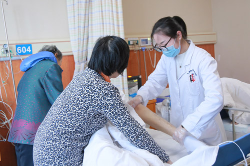 术后患者仍处于中度昏迷状态。经过一个月的高压氧、物理因子辅助治疗、康复训练等治疗,侯主任带队查房时发现患者渐渐地有了意识,可遵医嘱活动,进行一些比较简单的动作如抬手臂等等。
