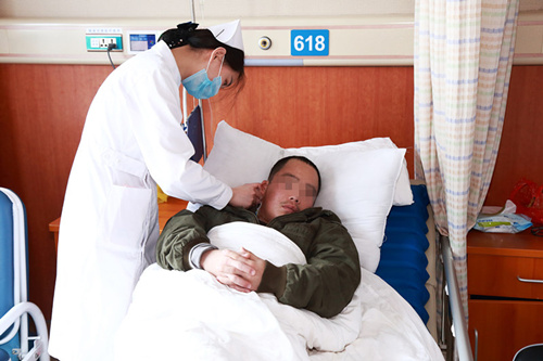 出院在即,护士仔细为卓文做最后一次护理
