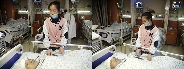 从去年12月19日,重度昏迷的莫钢廷在妻子小冯的陪伴下,从宁波市第二医院国家重点ICU病房转院到上海蓝十字脑科医院神经外科6B病区,进行进一步神经重症昏迷促醒治疗。到现在正月十八近两个半月时间里,小冯始终陪伴着莫钢廷身边,没有回家过一次。