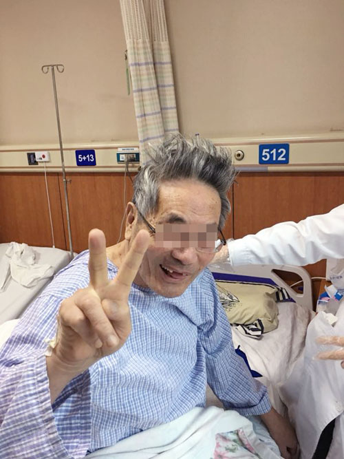 2月9日下午,没有人搀扶,带着康复的欢喜和满意的笑容,裘老先生走出了蓝十字医院的大门。