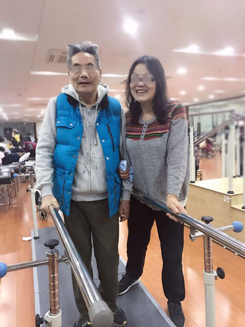 在医患双方共同努力下,老教授在二楼康复科的康复性训练也取得了非常好的成效。经过一段时间的训练,在家人和医护人员的搀扶下,老教授可以慢慢走一段距离,这让老教授信心倍增,也让家属都看到了希望,越发配合医生的工作。