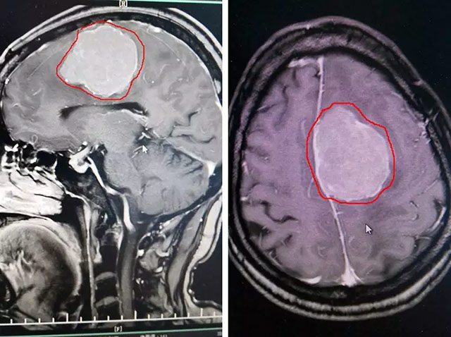▲ 患者颅内脑膜瘤如鸡蛋大小,可能危及生命