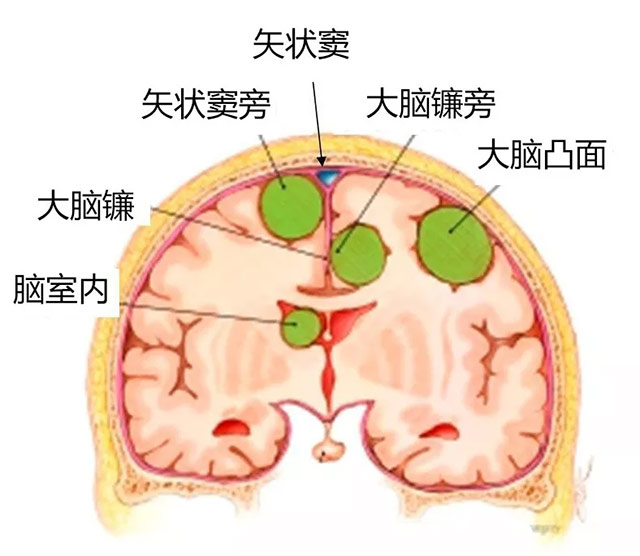 大脑镰旁脑膜瘤肿瘤较小时一般不引发明显的临床症状,因此发病时肿瘤往往已长得较大。