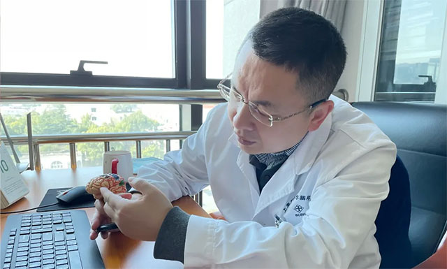 ▲ 细心的吴治群博士,耐心地为家属讲解此次手术的微创性