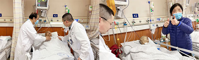 看到前来查房的潘仁龙主任和吴治群博士,郭女士竖起了两个大拇指,并感激道:“你们于危难中将我老伴从‘鬼门关’上救了回来,我和家人都万分感激,我要为你们竖起两个大拇指,而不是一个大拇指!”郭女士一再强调是两个大拇,这自有其中的缘由——