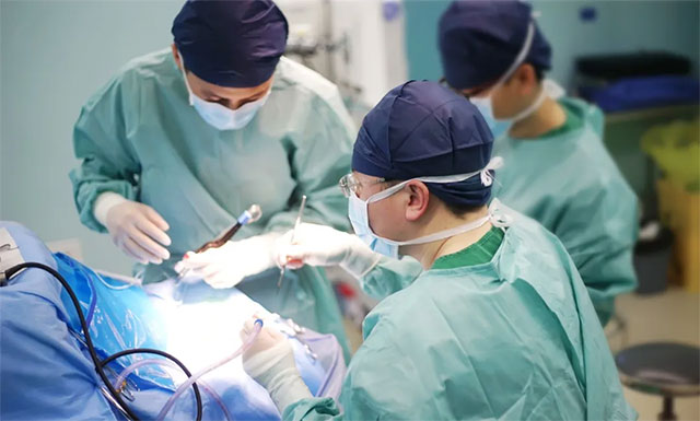 专家团队临危不乱、镇定自若,根据患者的病情紧急制定了周密完善的手术方案,在告知家属相关风险、可能预后并征得其同意后,于2月3日患者转入脑科医院当天晚上8:00,由潘仁龙主任、吴治群博士组成的专家团队紧急为患者实施了“颅内血肿清除+去骨瓣减压+颅内压监护探头置入+气管切开”手术。在手术台上,潘主任现场指导,吴博士主刀,黄秀夫医生协助等,在医护人员的共同努力下,手术顺利结束,患者安返重症监护室。