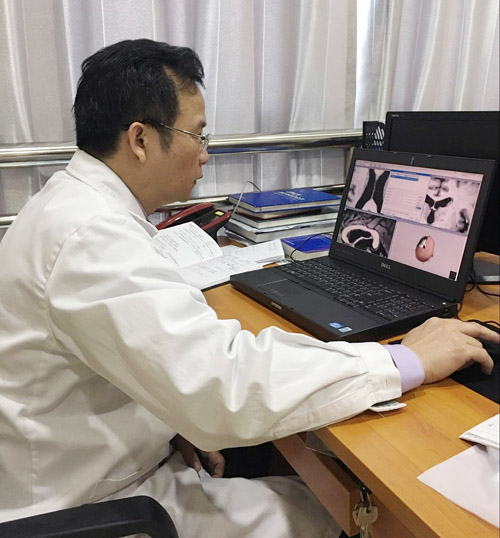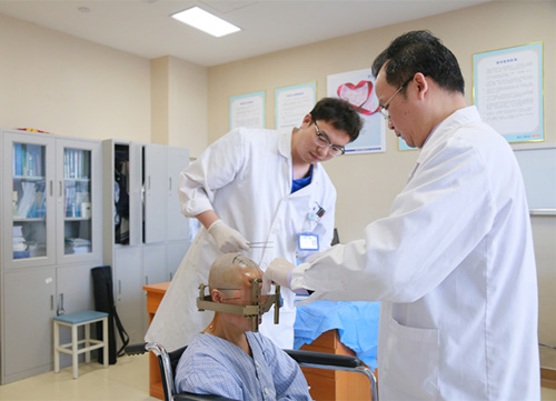 刘伟钦主任在安装立体定向仪头架
