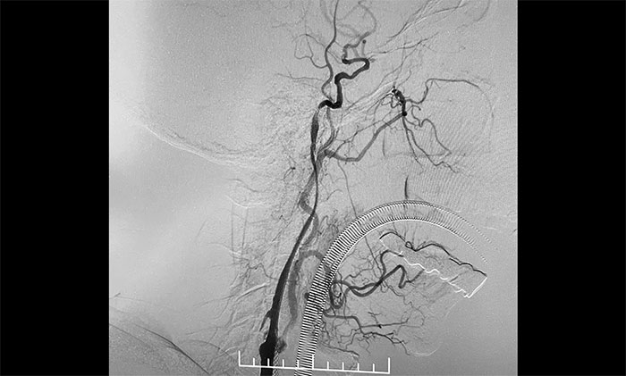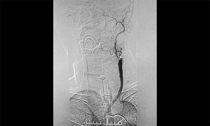 经过仔细、严谨的评估,并征得了患者及其家属同意后,近日,席刚明教授、王贵平博士在医护团队协助下为患者进行了左颈内动脉闭塞开通术+脑保护伞下颈内动脉支架置入术+球囊扩张术+脑血管造影术。