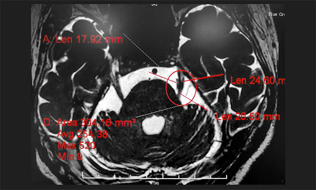 行三叉神经磁共振断层血管成像(MRTA)检查后,提示患者左侧三叉神经与周围小血管关系密切。
