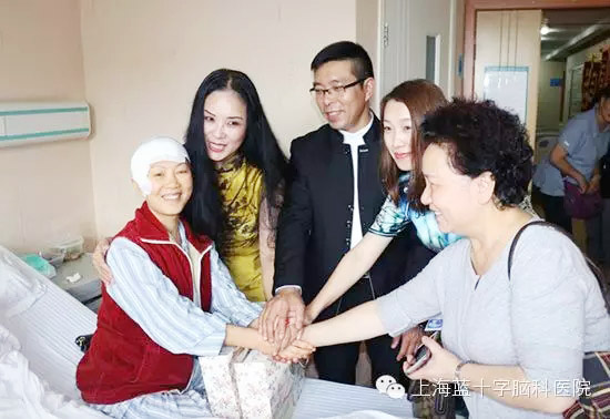 经过爱心人士牵线, 2015年9月10日,沈海娣慕名来到了上海蓝十字脑科就诊,当时沈海娣的肿瘤已经长大8公分,可以说是极限了,是相当的危险,加上部分肿瘤组织血运丰富,手术确实是不好进行。但一想到不尽快实施手术切除肿瘤,病人后果将不堪设想,经过包括沈建康教授在内的专家组反复研究、讨论,请专家会诊,费了很大的功夫,终于研究出了一套可行的治疗方案。