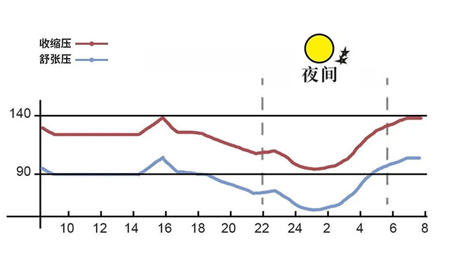 李振并主任进一步解释,多数学者认为正常人24小时血压节律呈双峰双谷,在凌晨2-3时一般为最低谷值。这种昼夜血压波动曲线状如长勺,可以形象地称这种血压为“勺型血压”。
