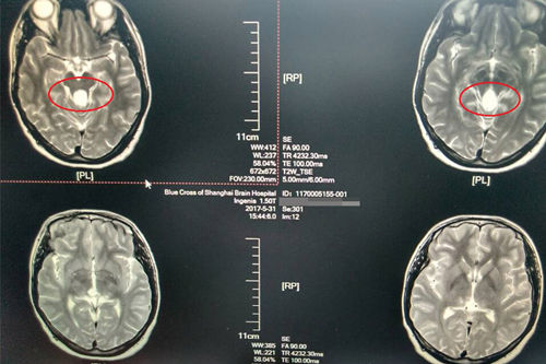 今年的3月份,李莹忽然感到双眼视物模糊,偶尔出现重影的情况,在丈夫的陪同下,李莹到上海蓝十字脑科医院进行了全面的检查。检查中发现,李莹中脑四叠体旁有一囊性占位,供血不甚丰富,对四周结构造成压迫。