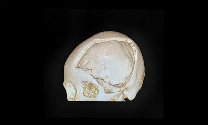▲ 左侧颅骨大面积缺损