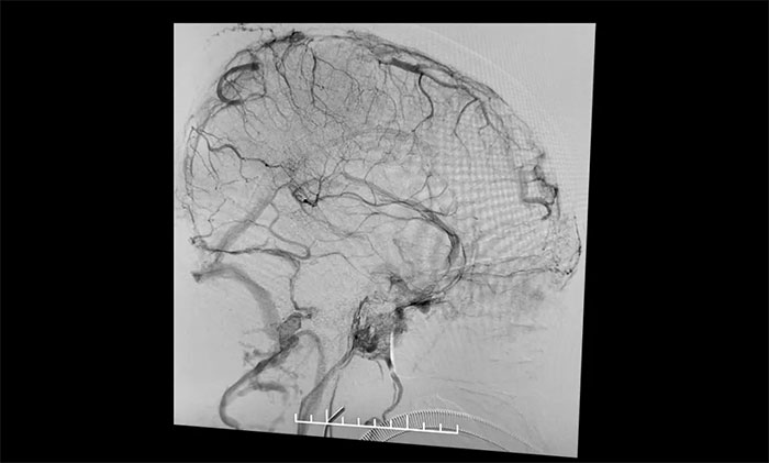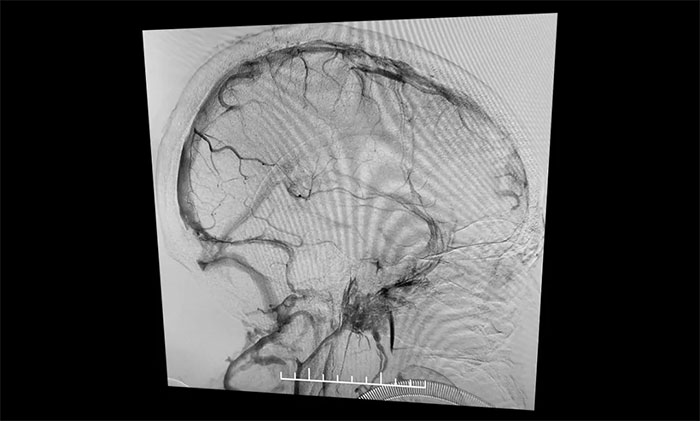 在麻醉科团队及导管室介入团队的密切配合和监护下,4A脑血管病一科主任席刚明教授、4A脑血管病一科副主任王贵平博士小心探索,一边“疏通”,一边不断切换正位及侧位造影,避免造成额外损伤。经过3个多小时的连续奋战,经多次支架取栓、导管抽吸,取出大量暗红色血栓,复查造影见上矢状窦显影明显改善,窦汇、右侧横窦、乙状窦显影改善,左横窦、乙状窦显影可,患者颅内静脉窦顺利再通。行XperCT未见颅内出血。
