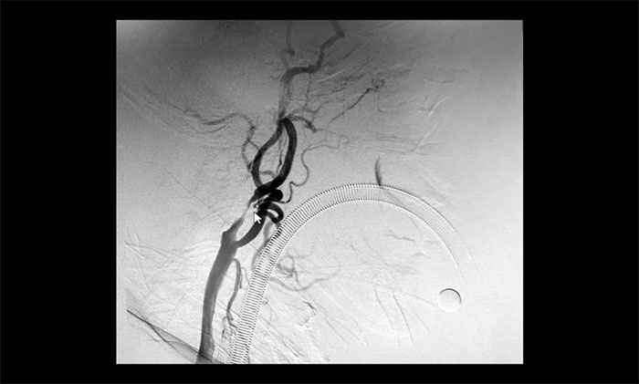 于耀宇主任表示,根据该患者双侧颈动脉狭窄的病情特点,为避免手术后引起高灌注损伤等严重并发症,考虑采取分期进行颈动脉支架置入(CAS)手术方式,优先处理责任侧。于主任进一步解释道,脑高灌注综合征(CHS)是指颅内动脉狭窄被解除后没有发生脑缺血的患者,原低灌注区血流灌注值显著增加,超过脑血管自动调节能力而引起的一种严重并发症。临床一般表现为意识障碍、头痛、神经功能缺损、癫痫、颅内出血、精神症状、共济失调等。