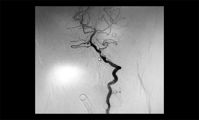 在明确告知分期手术方案,并取得患者家属同意后,5月21日,于耀宇主任和团队医生在全麻下为曹老伯先行脑血管造影术+左侧颈内动脉支架经皮置入术,术后给予预防感染、护胃、补液等对症治疗。