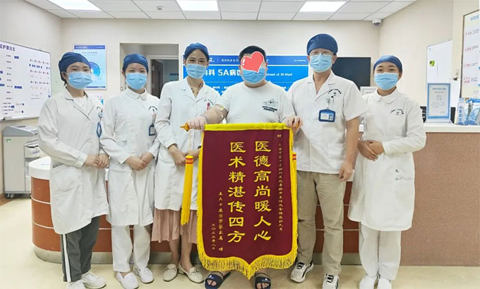 日前,阿泰已顺利办理出院手续。临行前,家属特意定制了一面锦旗,并交待阿泰一定要亲自交到李振并主任手中,借以表达对全体医护团队精心救治和贴心照护的感激之情。