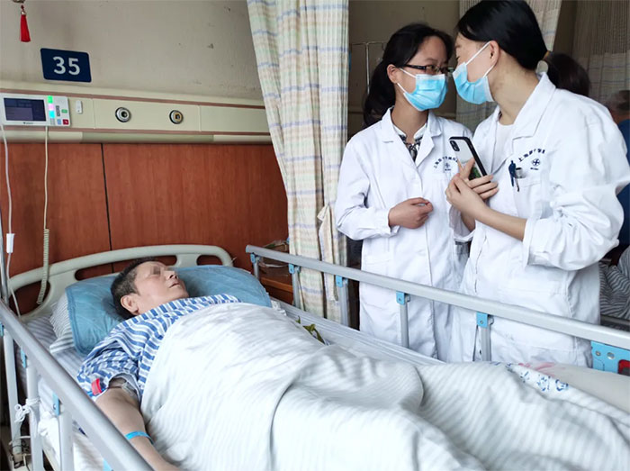 张静波主任介绍,刚开始,患者在疼痛刺激时会有躲避等动作;到后来睁眼,有人在走动时候,眼神会跟着人走;再过一段时间,视威胁时有闭眼反应,逐渐有意识了;再过一段时间,问话有回应,比如闭眼睛、握握手、伸舌头张嘴,均可以遵嘱执行动作活动;之后会说话,叫什么名字、在哪住都记得清楚。“张主任,我要给你提个建议!”一天早上查房时王阿姨对张静波主任说到,其意识已经非常清醒了。