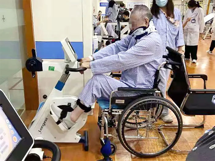 日复一日,在大家的共同努力下,目前老刘上肢已基本恢复了正常活动,正在加强握力及精细动作的康复训练。原本瘫痪的下肢恢复了一定的运动能力,虽然仍不能自主站立,但已经可以独立在医院康复大厅进行踩单车训练了。“想不到他能恢复得这么快,这么好!”老刘妻子激动地表示。
