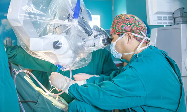 ▲ 杨忠旭教授正在为患者进行微血管减压手术