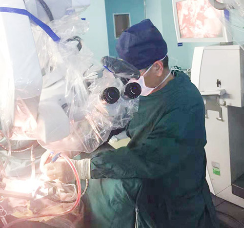 由于后交通动脉瘤夹闭手术具有入路复杂、解剖位置深、毗邻结构特殊等特点,手术操作要求极高,手术风险非常大,是神经外科手术的一大难点和挑战。主任团队制定了一套科学完善的手术方案,由他亲自主刀,历时三小时,手术顺利完成。通过对已被成功夹闭的动脉瘤进行穿刺,患者动眼神经的压迫也得到一定消解。