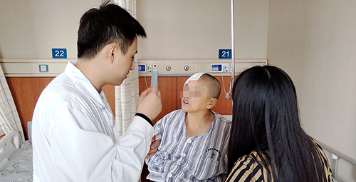 ▲管床医师向患者和家属讲解术后恢复注意事项