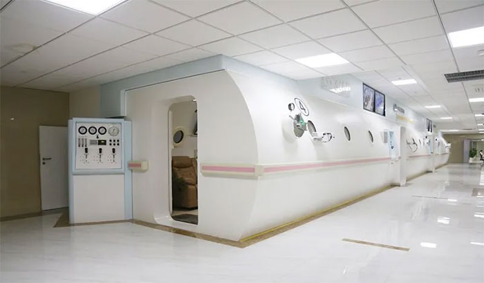 高压氧治疗是上海蓝十字脑科医院特色诊疗之一,医院高压氧科氧舱群为四舱10门GY3400型方圆高压氧舱群,规模居上海前沿。