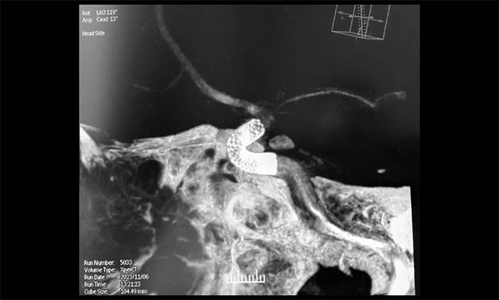 席刚明教授分析认为,该动脉瘤不规则,破裂风险大,建议积极治疗。但该动脉瘤位置不适合显微手术夹闭治疗,而常规支架辅助栓塞难以实现眼动脉起始部动脉瘤栓塞,后期动脉瘤进展及复发风险高,较好的治疗方式为血流导向装置置入。大家一致同意治疗方案,与家属详细解释沟通后,同意进行血流导向装置置入治疗。