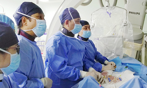 ▲医疗团队进行Tubridge血管重建装置植入手术