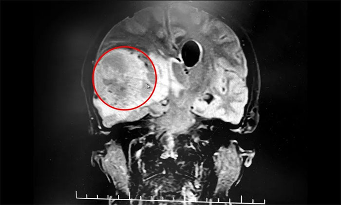 ▲ MRI检查,提示鸭蛋大小脑肿瘤