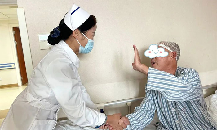 在护士长张福英的带领下,全体护士都很精心的护理,对我们很关心,充满耐心和爱心,病人和家属特别满意。我们家病情很重,这次能从鬼门关里抢救回来,现在恢复的跟以前都差不多了。你们救死扶伤的精神让我们发自内心的感到很满意,感谢蓝十字脑科医院有这么好的医生、护士、主任、护士长,让我们住院住的非常顺心,像在家一样。