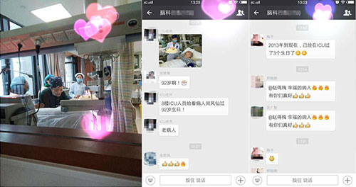 三年前,阿婆过89岁大寿的时候,也是院里一些医护人员陪伴她一起过的,当时院里买了蛋糕和礼物,至今护士长赵德梅依然记得那个时候。她说每位患者只要在医院一天,ICU团队医护人员就会好好照顾陪伴、照料他们。