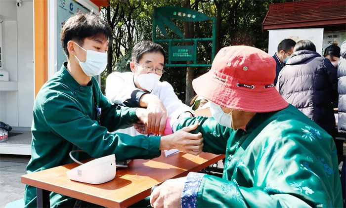 面对排着长队、前来进行咨询的居民,张庆成主任认真询问每个人的健康情况,并从诊疗、检查等方面给予合理的建议,同时从饮食、睡眠等行为习惯入手给予专业指导。