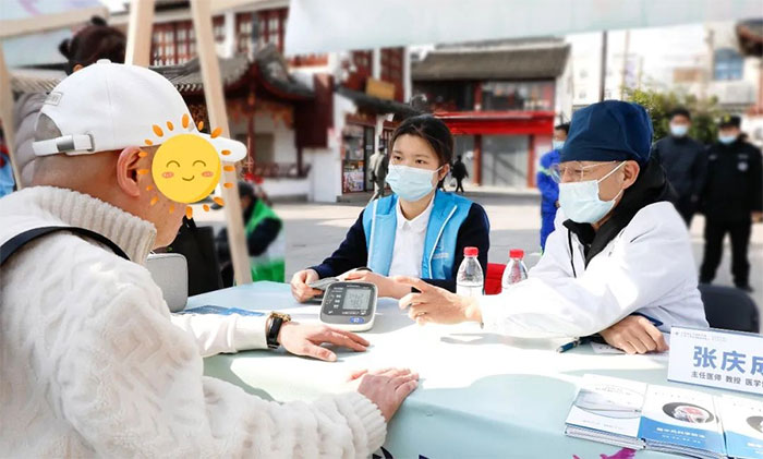 三月春风拂面来,便民服务暖人心!3月2日上午,七宝镇文明办联合社区办开展的“文明同心 志愿同行”——3·5学雷锋志愿服务主题活动在七宝老街举行,活动涵盖医疗咨询、家电维修、消防宣传和垃圾分类宣传等多个服务项目。活动当天一大早,医院神经内科重症监护8A病区张庆成主任和神经内科7A病区护士曹静来到活动现场,为居民提供医疗健康咨询及血压测量等服务。