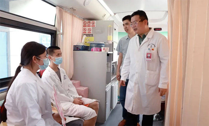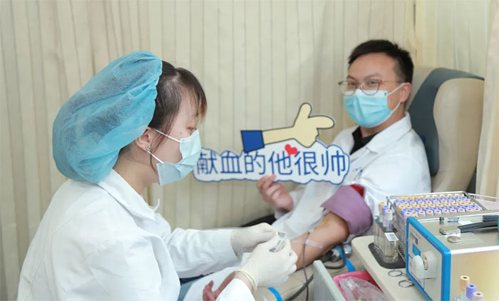 医院书记朱敏带头无偿献血,广大党员干部奋勇争先,充分发挥先锋模范作用,以实际行动诠释共产党员的责任与担当。