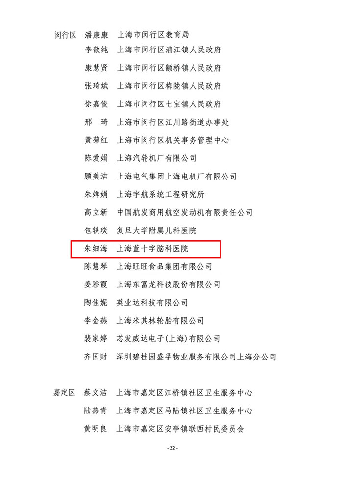 9月29日,在颛桥爱心献血屋启用仪式上,主办方宣读表扬了2023年度上海市社区、企事业单位献血工作优秀个人(闵行区部分)名单。上海蓝十字脑科医院【同济大学附属上海蓝十字脑科医院(筹)】医务科朱细海科长榜上有名,荣获“优秀个人”称号。