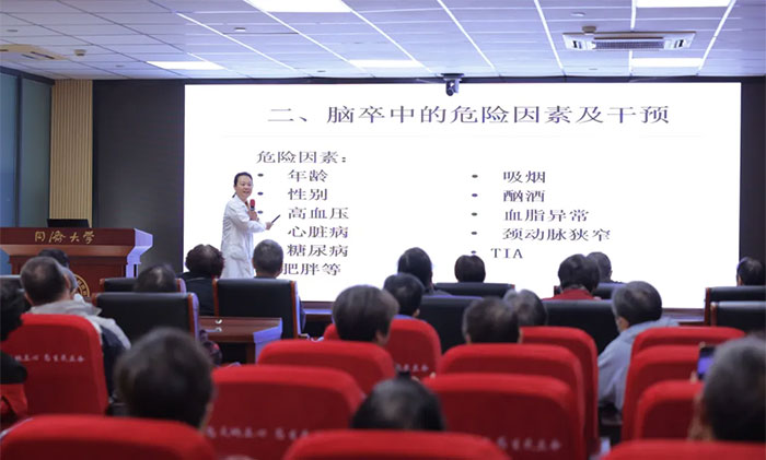 10F综合内科主任许培培围绕“脑卒中的预防”主题,从脑卒中的概念、常见症状、危险因素、急救与溶栓取栓等方面,深入浅出地为居民讲解脑卒中知识。