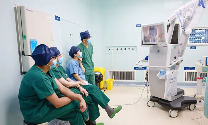 ▲ 观摩显微镜下经鼻蝶垂体瘤切除手术、椎动脉支架置入手术