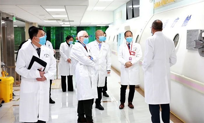 ▲ 专家参观了解高压氧、伽玛刀的情况