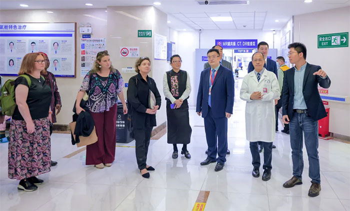 抵达医院后,专家代表们一行实地参观了医院9F重症医学科、8B神经内七科、7A神经内三科、高压氧科、影像科、放疗科等重点特色科室。