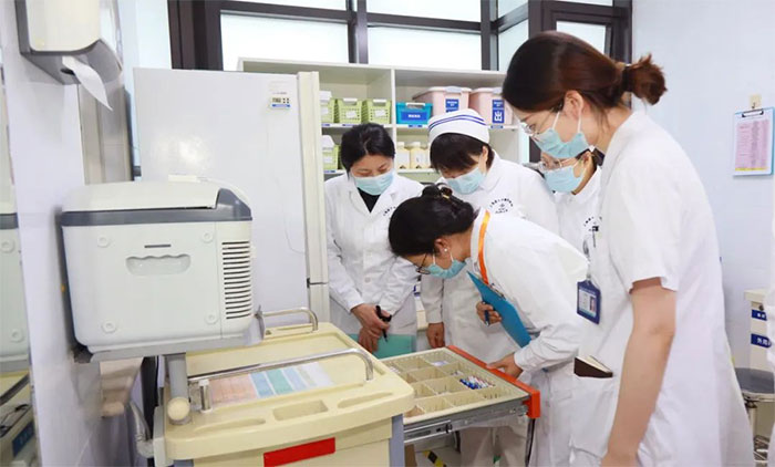 在会议室,督查组专家从落实护理制度、护理不良事件报告分析情况、撰写年度安全报告、护士在职培训等方面对护理部管理台账资料进行严格检查。同时,督查组专家还深入门诊、急诊、重症监护室、部分临床科室,通过查阅台账、现场查看、人员访谈等多种形式进行现场督查。督查组专家不放过每一处细节,寻根究底,对医院护理工作进行了一场全面、细致、严苛的深入检查。