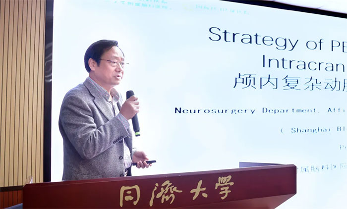 蓝十字神经外科学术副院长兼6A神经外一科主任于耀宇带来“颅内复杂动脉瘤PED治疗策略”的报告,对颅内动脉瘤疾病进行概述,分享PED临床应用要点与经验技巧,并结合一些典型病例及回顾性与前瞻性研究阐述PED的优势,解析颅内动脉瘤诊疗策略。