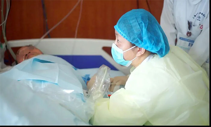 ▲ 李楠楠护士长为患者进行PICC穿刺
