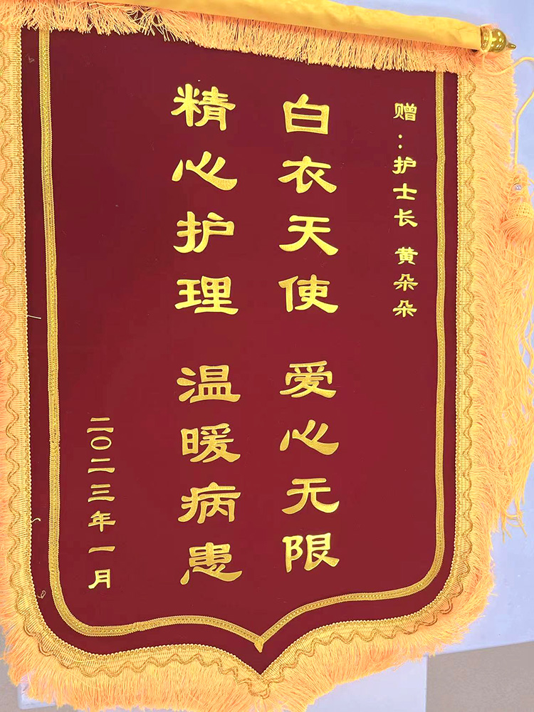 “她们所做的一切都是为了患者,不仅治疗病痛,还像对待亲人般关爱照顾患者。”经过三周精心治疗护理,贺阿姨病情明显好转,复查后于大年初六(1月27日)顺利出院。出院前夕,贺阿姨家属特意为5B病区余志良博士团队、黄朵朵护士长、宋明哲医生送上锦旗。