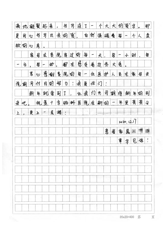 我是一名患者家属,现在我握着笔,写下的每一个字,都是充满感激的。