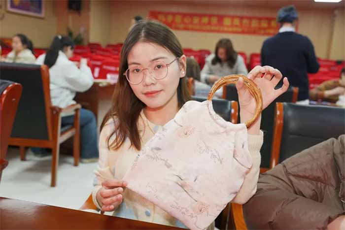 经过近一个小时的精心制作,一只只独具匠心的竹节包、一束束栩栩如生的郁金香陆续完成。大家纷纷举起自己的作品,脸上写满成就感与喜悦。精致的竹节包映衬着灿烂的笑脸,绽放的郁金香传递着节日的祝福,定格下这份独属于女神节的美好与温馨。