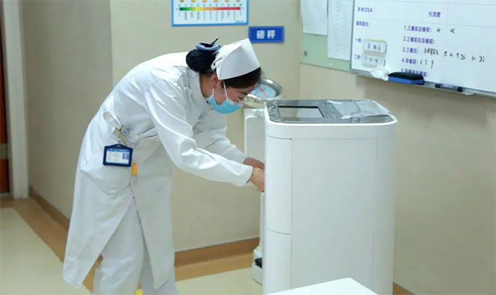 ▲ 从药房配药到病区查验签收,送药机器人顺利完成“跑腿”任务