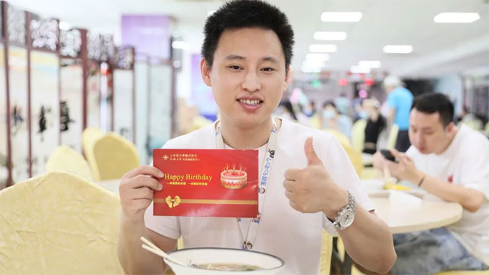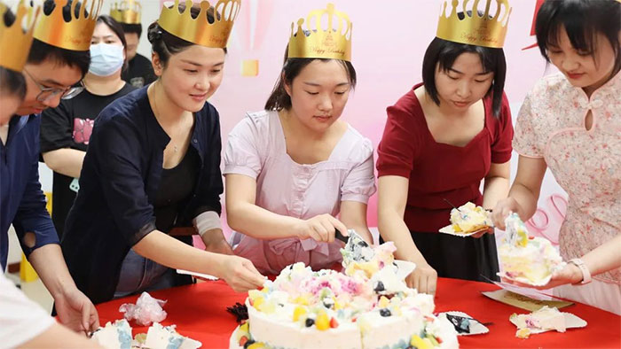 7月21日上午,在工会同事的精心布置下,一片简洁而又温暖的生日会场地搭建完毕,多彩绚烂的气球,温馨浪漫的生日幕布,精美贴心的礼物,美味可口的蛋糕,寓意美好的寿面……点点滴滴的细节里,无不蕴含着对大家满满的关爱。在浓烈的仪式感中,寿星们齐聚在一起,以生辰之名,赴夏日之约。