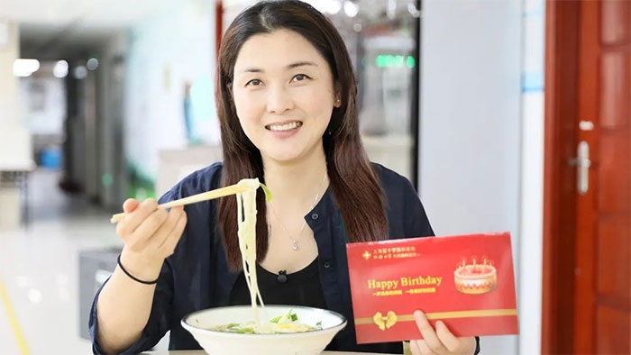 6B神经外科医生黄秀夫大快朵颐着香喷喷的长寿面愉快地表示,“第一次在医院参加集体生日会,让我真切地感受到了医院对我们每一位员工的关爱,由于疫情的限制,很久没有参加这种集体活动,这种感觉非常久违,增进了人际关系,增强了团队意识。”