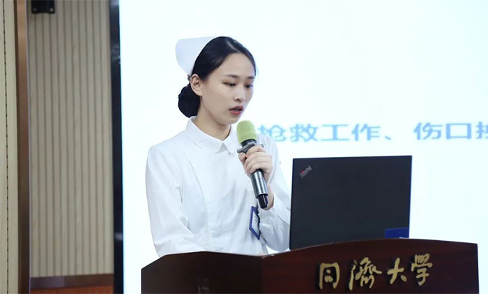回顾过往的点点滴滴,不论是在日常工作中,还是在防疫抗疫的大业中,都离不开白衣天使的身影。她(他)们中,有的人忍着心痛,放下嗷嗷待哺的婴儿,奋身扑向抗疫第一线;她(他)们中,有的人24小时连轴转,忙得忘掉了时间,只为了守护好患者的最后一道生命防线;她(他)们中,有的人耸起了尚显稚嫩的肩头,组织带领科室人员志愿核酸采样工作……只有心怀热爱,才能无愧于心。凭着对护理事业的赤诚与执着,凭着对蓝十字的无限信任和依赖,竞聘人员用言语描摹出一幅幅生动的工作剪影,扣动着评委们的心弦。